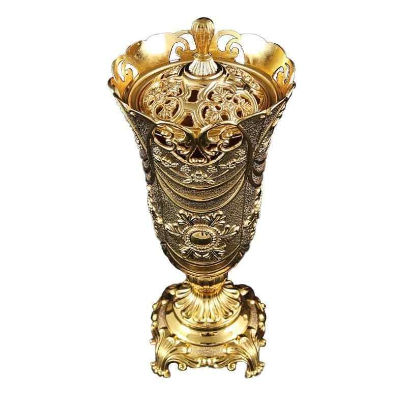香炉 ヨーロピアン 教会風 金メッキ ゴールド クラシック アンティーク調 精巧 高級感 中東 エキゾチック 合金製 メタル お香立て 装飾 オブジェ インテリア 置き物 仏具