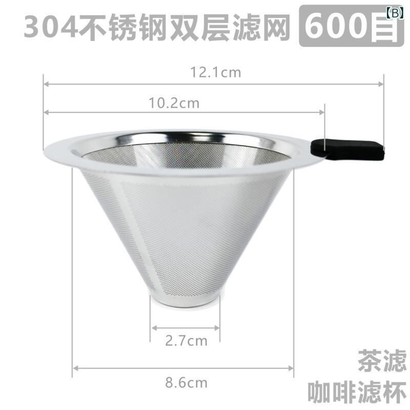 コーヒー ドリッパー 304ステンレス製 ダブルメッシュフィルター 二層構造 ペーパーレス フィルター不要 エコ ハンドドリップ 自宅用 再利用可能 茶こし 紅茶 兼用 モダン シンプル