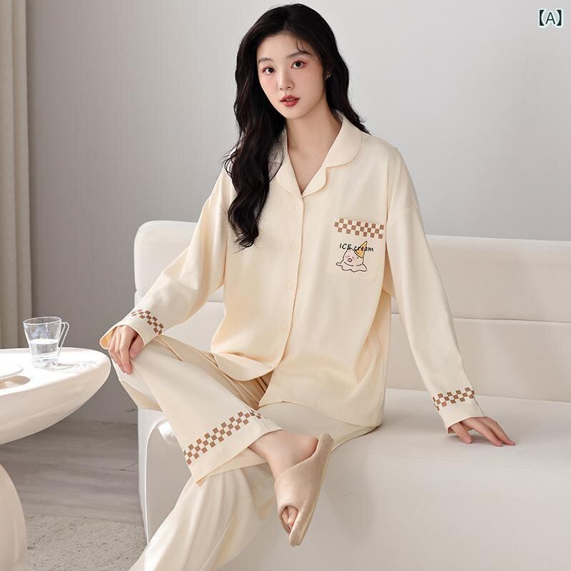 パジャマ カップル ペア ルームウェア 純綿 コットン 長袖 開襟 上下セット 部屋着 ワンマイルウェア 柔らか 肌触り 快適 春秋 通気性 伸縮性 保温