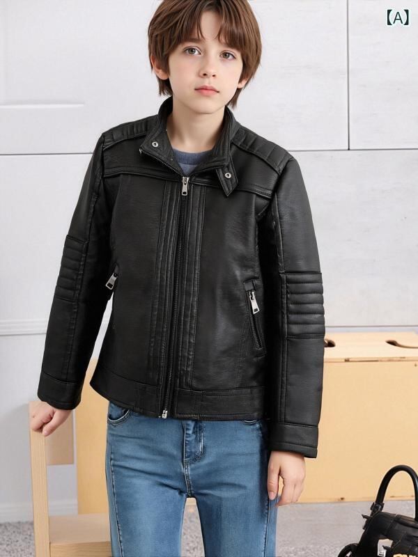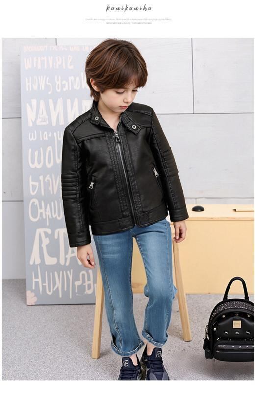 ジャケット キッズ 男の子 女の子 革ジャン ライダース PUレザー スタンドカラー ショート丈 ジップアップ 無地 ソフトタッチ 春秋 幼児 小学生 ジュニア 通学 普段使い カジュアル