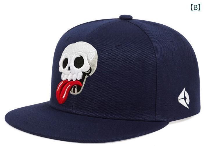 キャップ メンズ 平つば フラットブリム スカル ドクロ 刺繍 ヒップホップ ストリートファッション コットン 秋冬 サイズ調整 アジャスター付き 欧米風 ブラック ネイビー
