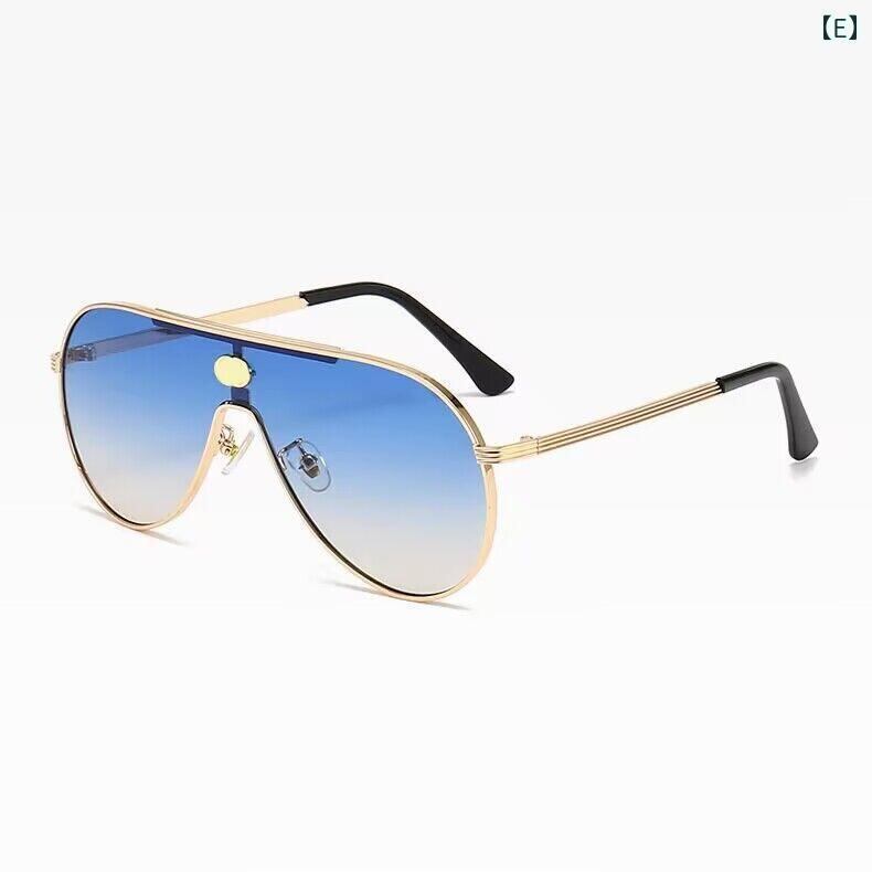 サングラス レディース ユニセックス 欧米 レトロ ビッグフレーム 一体型 オーバル型 パイロット型 メタルフレーム PCレンズ UV400 ゴールド グレー ファッション小物 紫外線対策 ドライブ レジャー 高級感 シンプル カジュアルリッチ