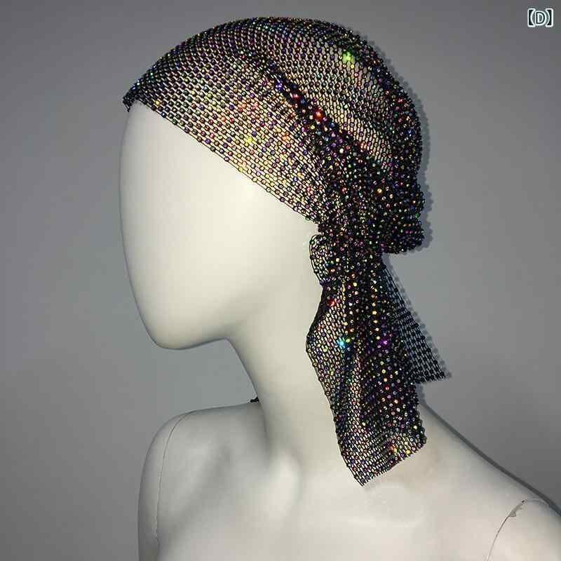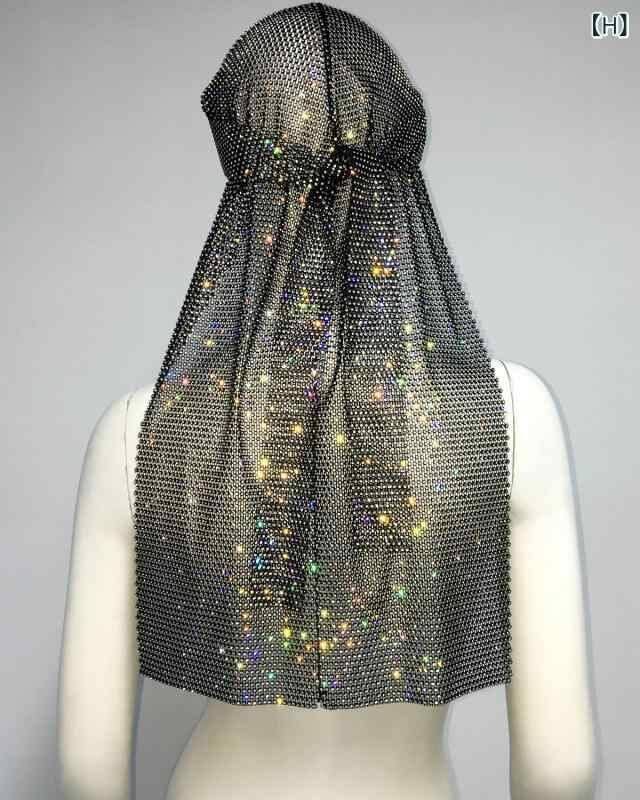 フィッシュネット ヘッドラップ ユニセックス 男女兼用 オーロララインストーン 伸縮性 ドーム型 ツバなし ストリート ヒップホップ ダンス イベント ファッション小物 ポリエステル 速乾性 通気性 個性的 軽量