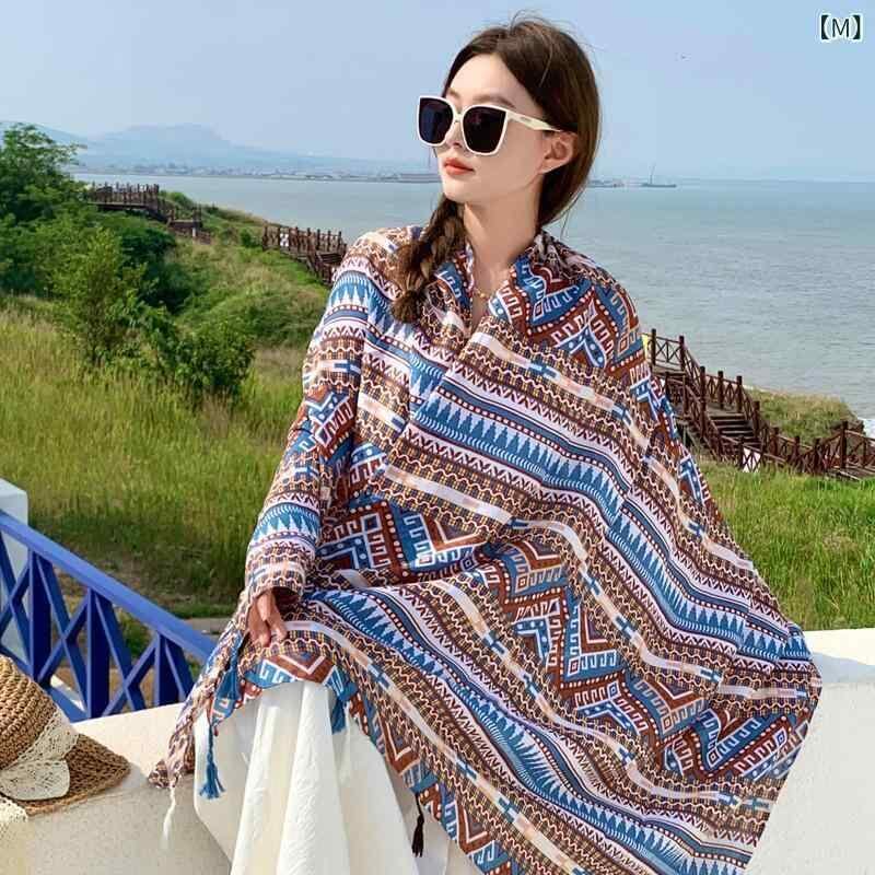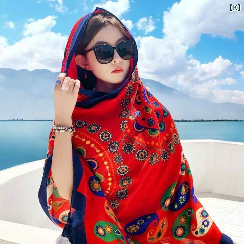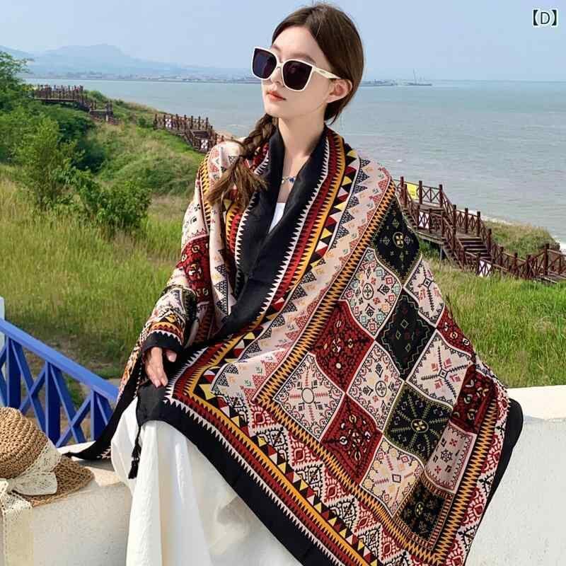 ストール レディース UVカット エスニック柄 旅行 リゾート ビーチ 2WAY 冷房対策 春夏 ナイロン 大判 幾何学柄