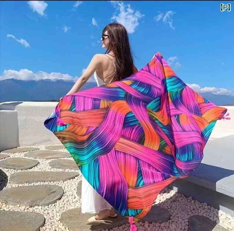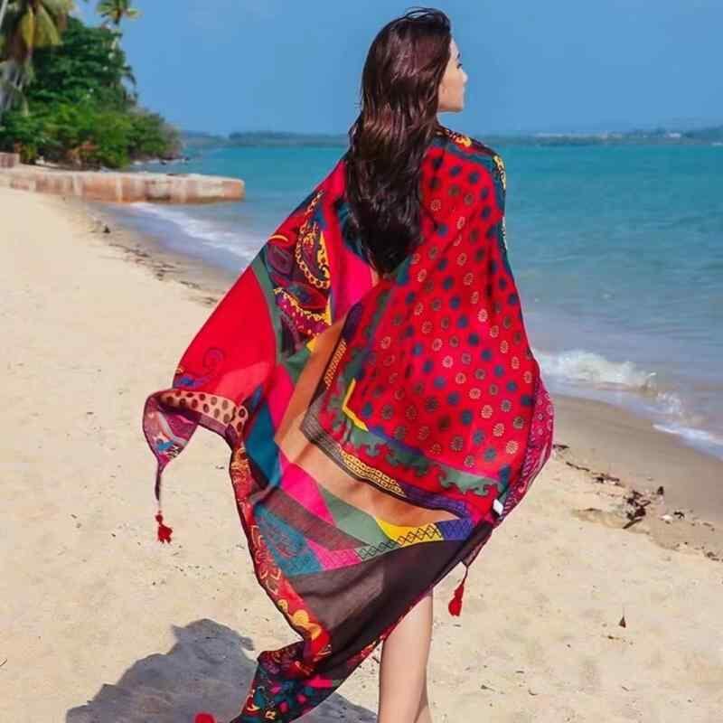 スカーフ レディース 女性用 ストール ショール 薄手 民族風 エスニック ボヘミアン レトロ 春夏 海辺 ビーチ リゾート 旅行 トラベル 日焼け対策 UV対策 ポリエステル