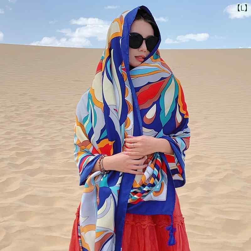 ショール レディース 春夏 アウトドア 海辺 旅行 トラベル 写真映え 大判ストール ポンチョ ケープ エスニック柄 民族調 快適 通気性 日よけ 羽織り 体型カバー 綿 コットン