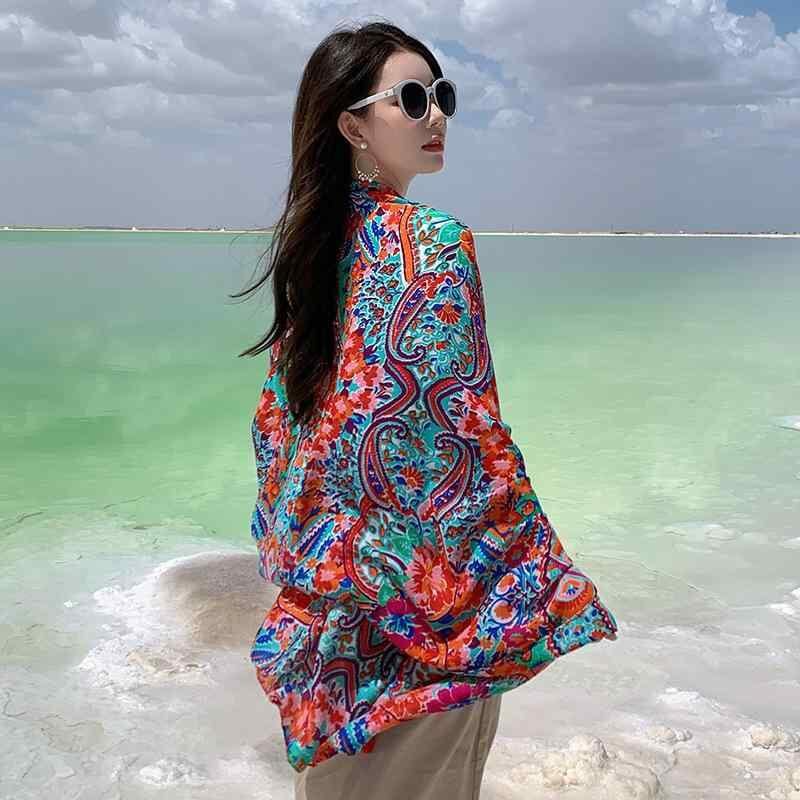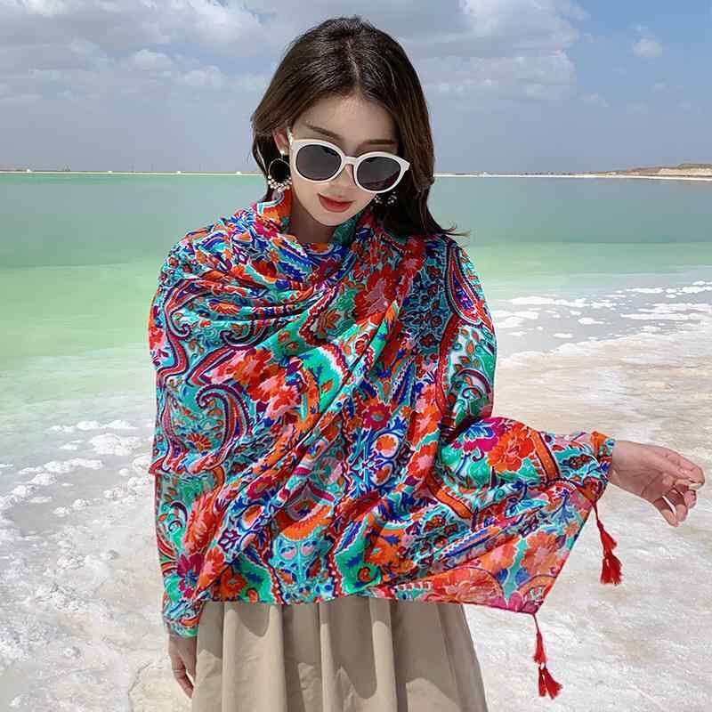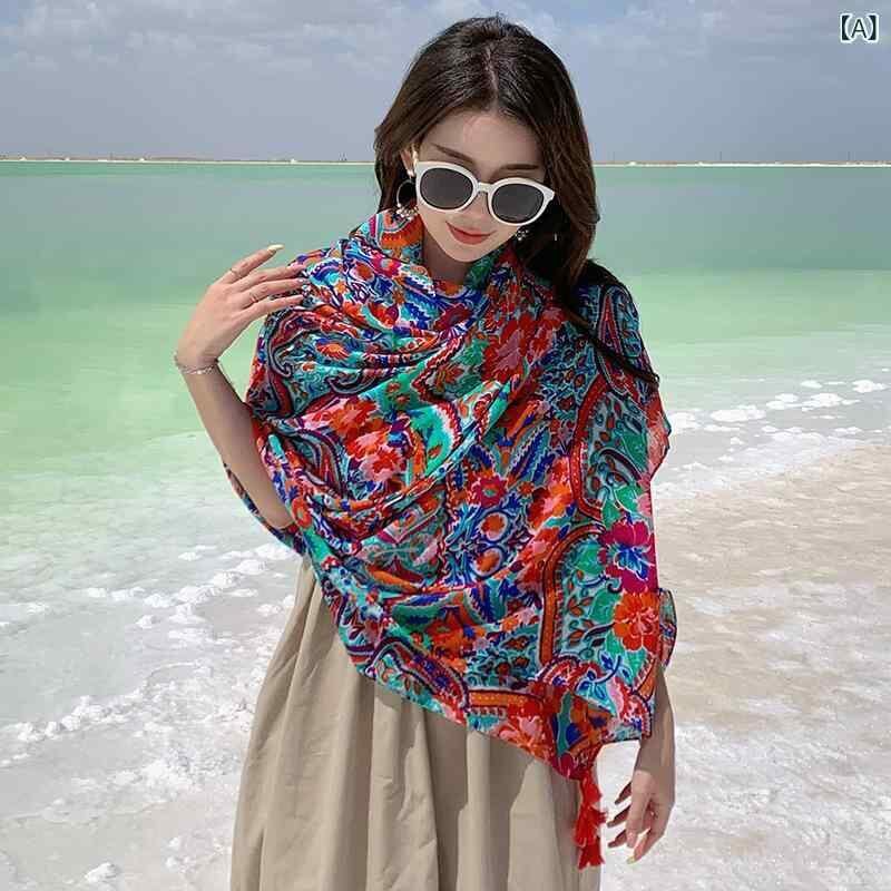大判ストール レディース 夏 アウトドア カジュアル 快適 通気性 エスニック 民族調 リゾート ビーチ 海辺 旅行 写真撮影 薄手 日よけ UV対策 ショール ショール ボヘミアン柄 カラフル