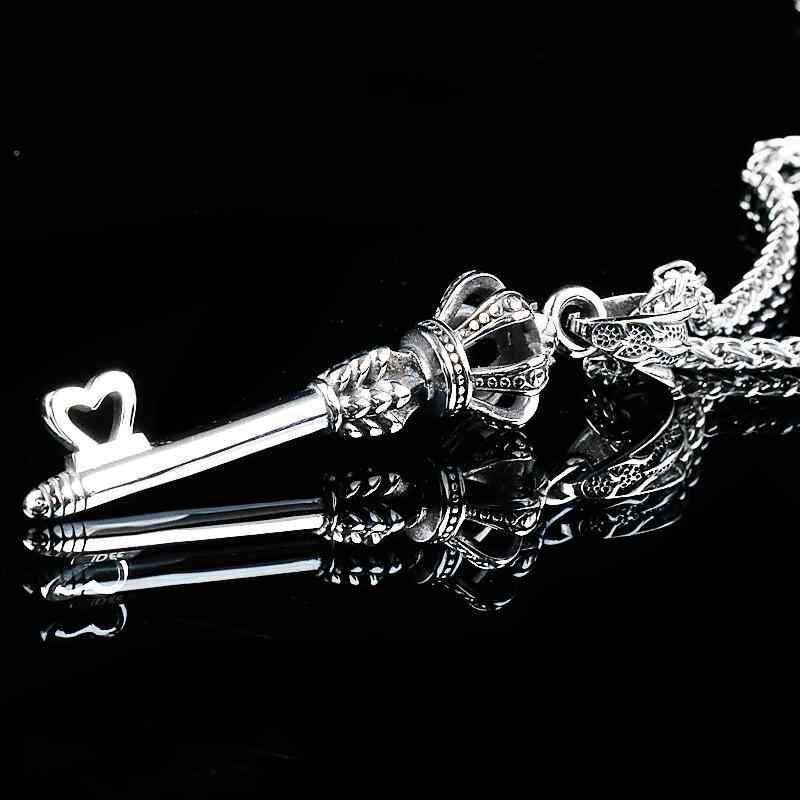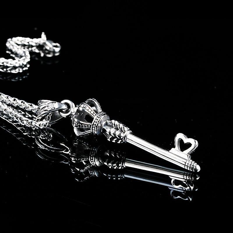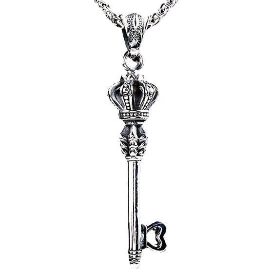 ネックレス メンズ レトロ ヴィンテージ キー 王冠 ペンダント ストリートファッション ヒップホップ カジュアル デイリーユース シルバーカラー 高級感 銅製