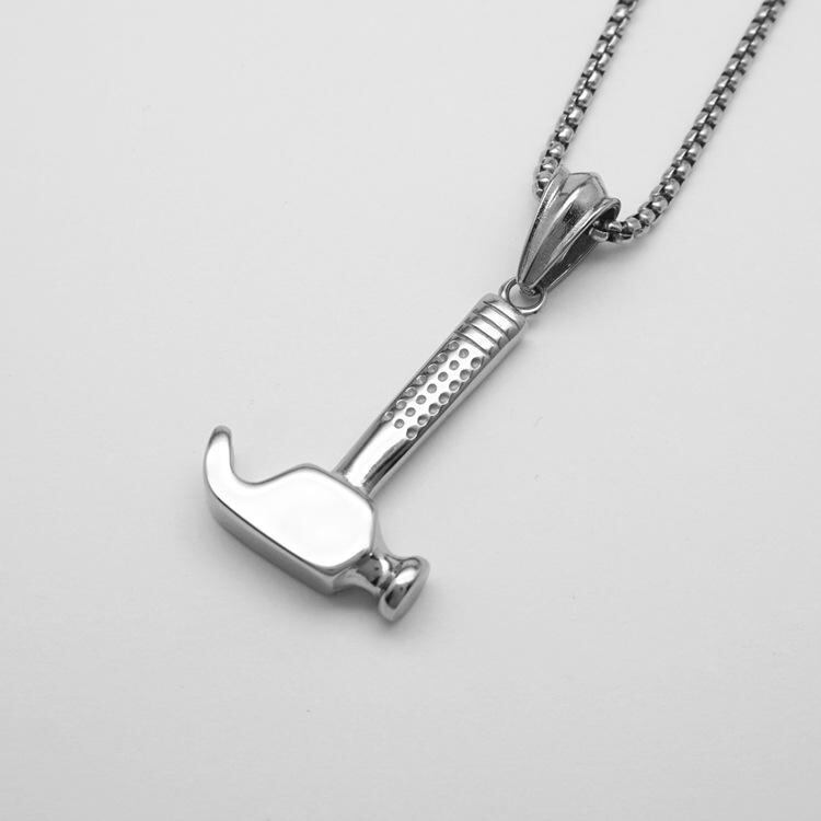 ネックレス メンズ チタン鋼 ステンレス鋼 ハンマー 金槌 モチーフ ペンダントトップ パンク ヒップホップ ストリート系 個性的 工具 道具 鋳造 デザイン カジュアル ファッション アクセサリー