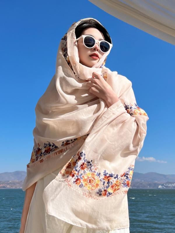 スカーフ レディース 綿麻 エスニック 民族風 大判 ストール ショール UV対策 日焼け対策 ボヘミアン レトロ エキゾチック ジャカード 旅行 リゾート 春夏 普段使い ワインレッド ネイビー オフホワイト ホワイト