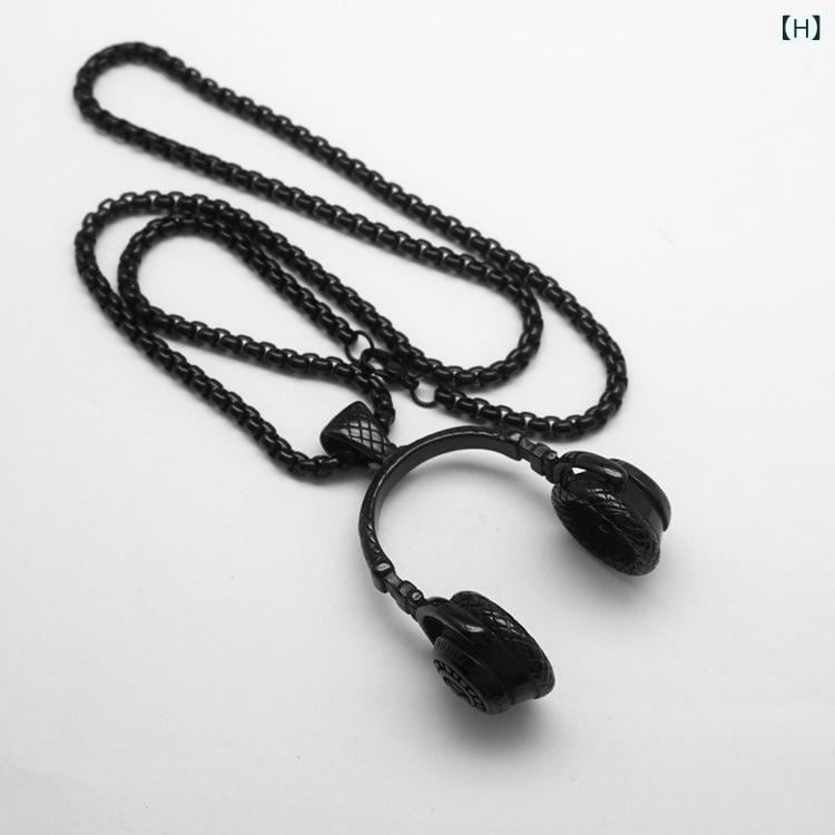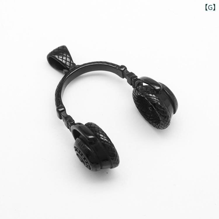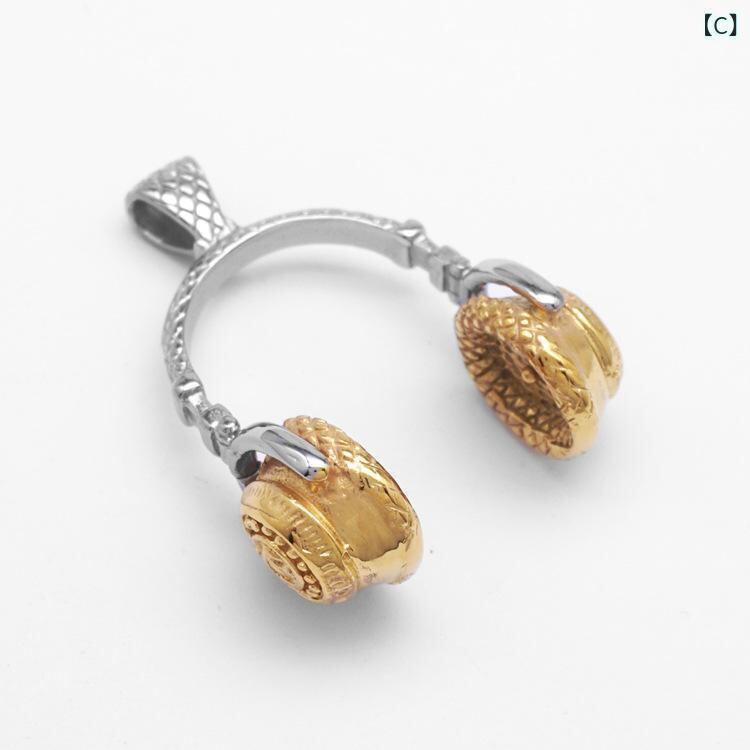 ネックレス 男女兼用 ユニセックス イヤホン ヘッドホン ペンダント ロック パンク ヒップホップ 音楽 個性的 ストリート トレンド 大型 ビッグ チタン鋼 ステンレス鋼 シルバー ゴールド ブラック バイカラー