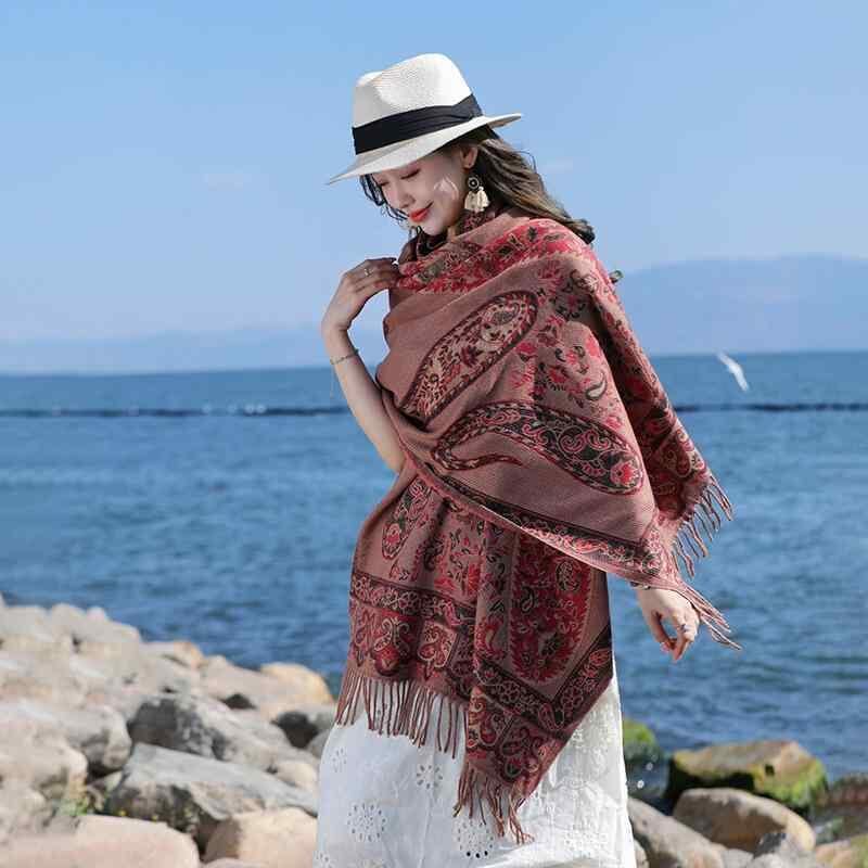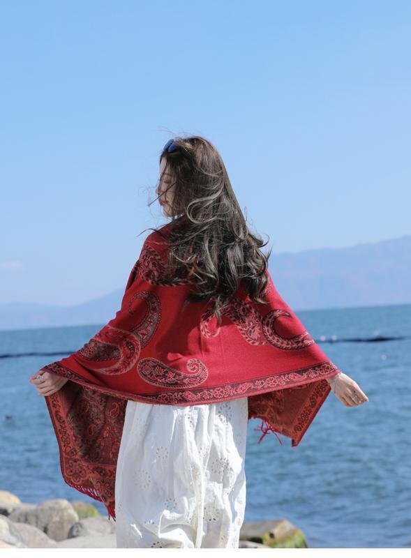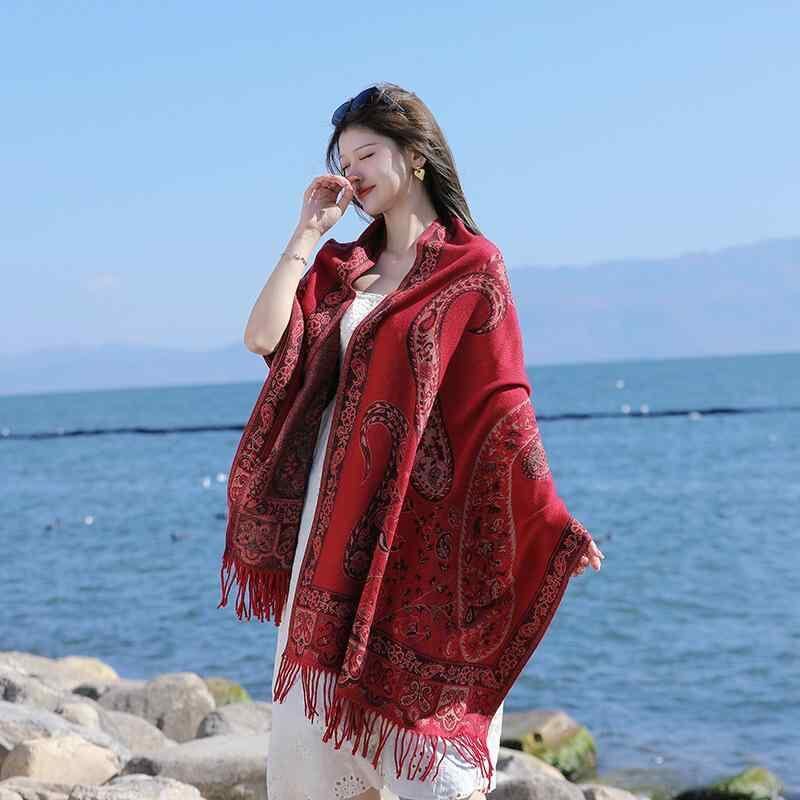 ストール レディース 民族風 ボヘミアン エスニック 春夏秋冬 オールシーズン 旅行 観光 写真撮影 大判 防風 保温 赤色 カーキ 黒 スカーフ
