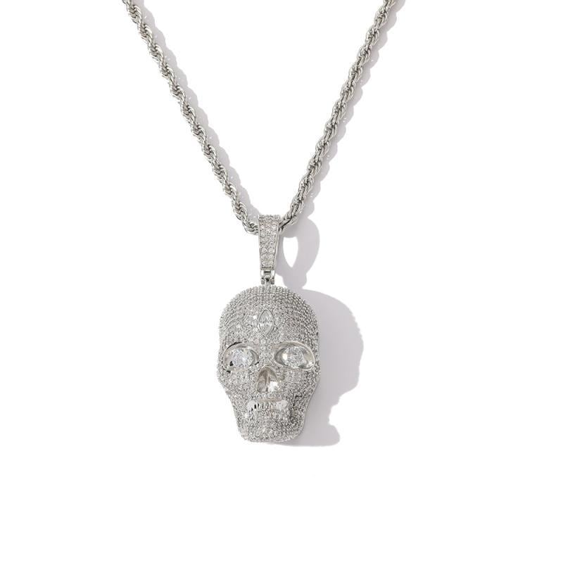 ネックレス スカルペンダント ヒップホップ ストリートファッション 銅製 ジルコニア輝く ハロウィン デビル 個性的 ユニーク ゴールド シルバー メンズ レディース 普段使い パーティー イベント クール ロック パンク