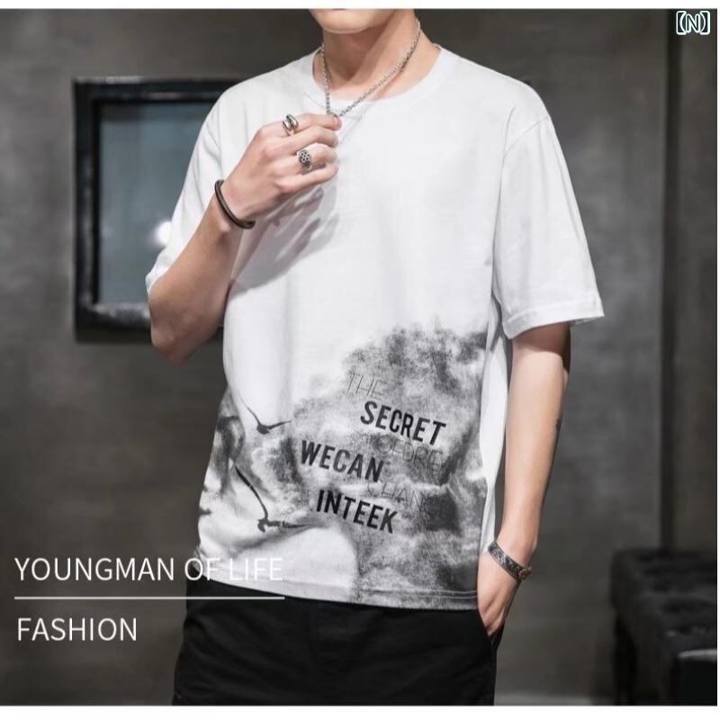 Tシャツ メンズ 半袖 ショートスリーブ 韓国風 スリムフィット 細身 通気性 速乾性 吸湿速乾 伸縮性 プリント柄 薄手 カジュアル 夏 サマー クルーネック 丸首 ポリエステル 再生繊維