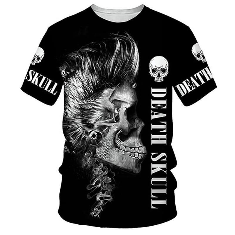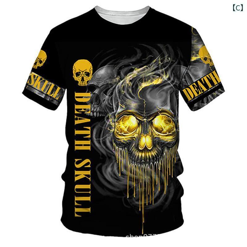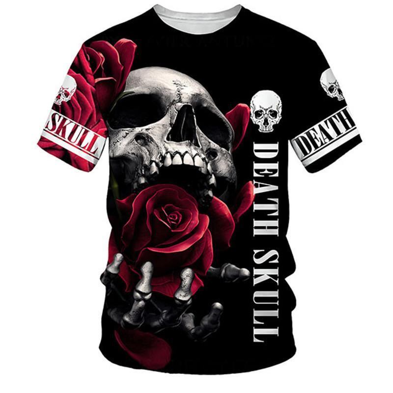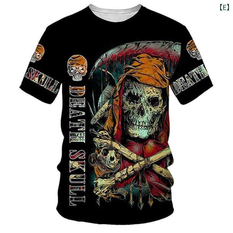Tシャツ メンズ 半袖 男性用 スカル ドクロ 3Dプリント クルーネック ストリート カジュアル トップス 春夏 ポリエステル素材 ストレートシルエット スポーツウェア レッド系