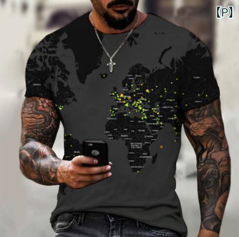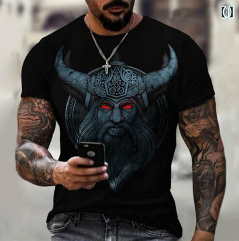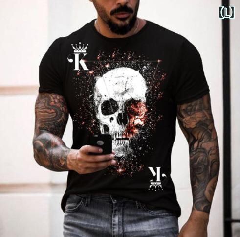 Tシャツ メンズ 男性用 3Dプリント スカル ライオン 半袖 クルーネック 丸首 ゆったり ビッグシルエット ポリエステル 再生繊維 カジュアルスタイル 春夏
