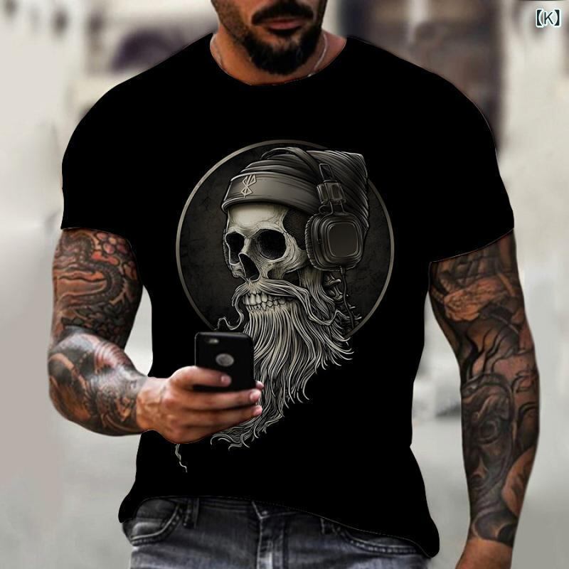 Tシャツ メンズ 男性用 スカル 3Dプリント カジュアル 半袖 ストリート ヒップホップ クルーネック ポリエステル メッシュ 吸湿速乾 薄手 オールシーズン 普段使い