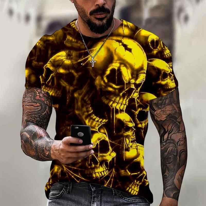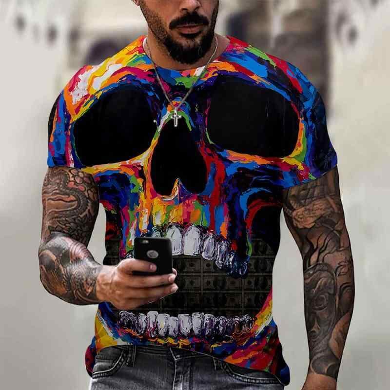 Tシャツ メンズ 半袖 クルーネック レトロ ヴィンテージ スカル ドクロ 3Dプリント ポリエステル ゆったり ビッグサイズ 春夏 通気性 日常使い 普段使い
