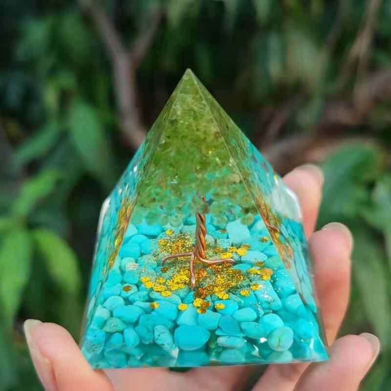置物 レジン クリスタルボール ピラミッド ターコイズ ツリー さざれ水晶 卓上 インテリア 手作り モダン シンプル パワーストーン 工芸品