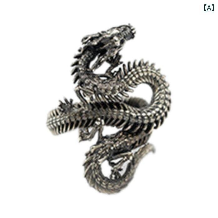 リング メンズ ドラゴン スカル スネーク パンク ロック レトロ 個性派 ワイルド 銅製 メッキ仕上げ 男女兼用 フリーサイズ