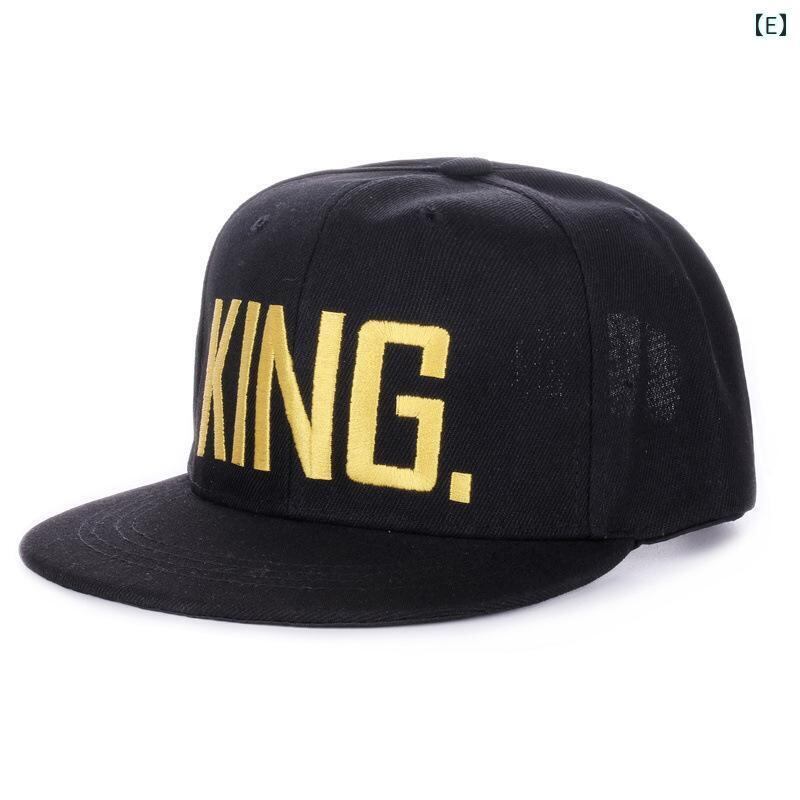 キャップ 男女兼用 平つば ベースボールキャップ ヒップホップ ストリート系 KING QUEEN デザイン 綿混素材 UVカット 日よけ 通気性 サイズ調節可能 普段使い カジュアル ダンス