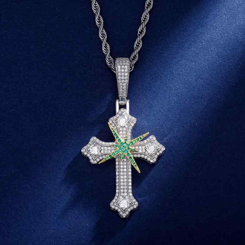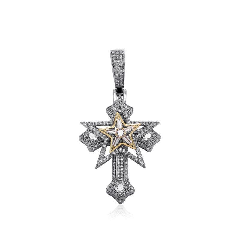 ネックレス 男女兼用 ヒップホップ ストリート 六芒星 流星 クロス ペンタグラム ペンダント ジルコン キュービックジルコニア 銅製 回転ギミック 個性的 レトロ ヴィンテージ ゴールド シルバー バイカラー
