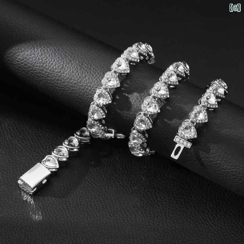 ・カテゴリ: ネックレス・スタイル: ヒップホップ・スタイル分類: 個性トレンド・対象: ユニセックス・素材: 亜鉛合金・加工: 電鍍・形状: 幾何学・チェーンスタイル: 氷砂糖チェーン・ペンダント素材: ラインストーン・カラー展開: ゴールド、ローズゴールド、シルバー・長さ展開: 20cm、45cm、50cm、60cm・幅: 11mm・重量: 約160g・流行要素: ハート型・流行要素分類: 形状・柄