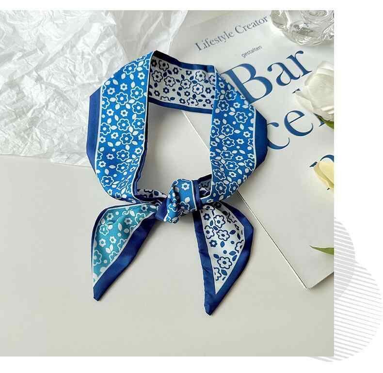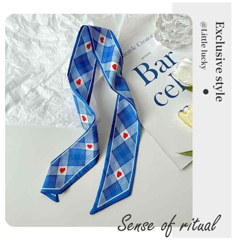 リボン スカーフ レディース クラインブルー 細長 ネックスカーフ ヘアアクセサリー バッグチャーム 春秋 ポリエステル かわいい フェミニン