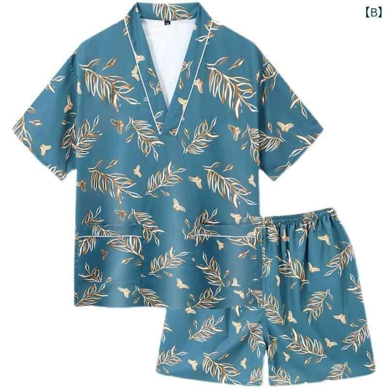 パジャマ ルームウェア セット カップル 男女兼用 テンセルコットン 綿 伸縮性 半袖 ショートパンツ サウナ お風呂上がり リラックスウェア リーフ柄 ゆったり 大きいサイズ 秋冬