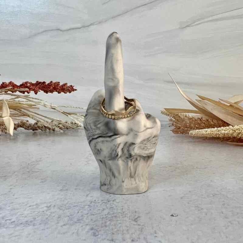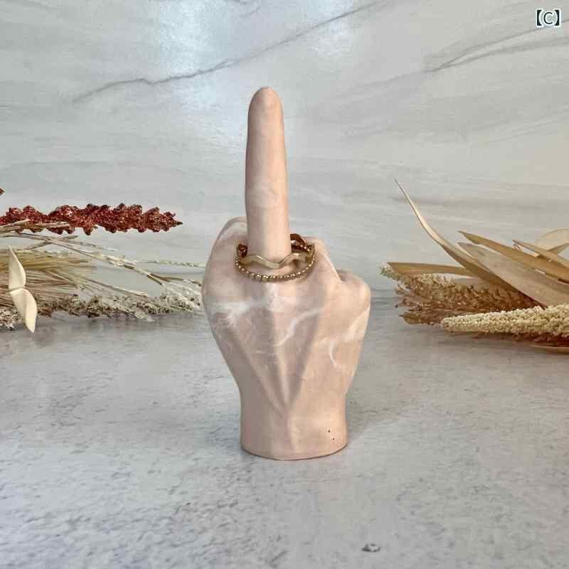 置物 リングホルダー 中指オブジェ ユニーク おもしろグッズ ジョークグッズ サプライズギフト ギャグアイテム 欧風 卓上飾り デスクトップ装飾 合成樹脂製 白 黒 ピンク