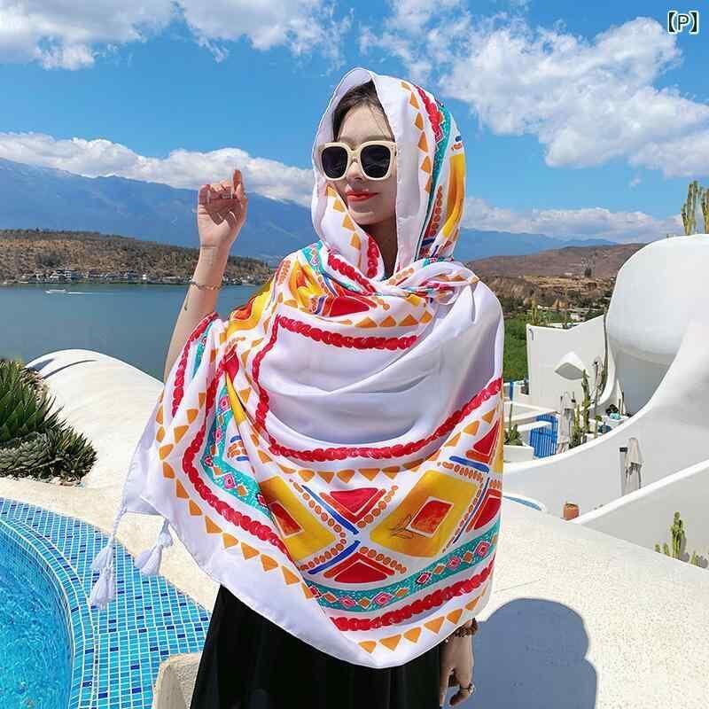 ストール レディース ビーチショール UVカット 日焼け対策 大判 コットン 薄手 軽量 春夏秋 旅行 トラベル 海辺 リゾート エスニック 多用途 ロング丈