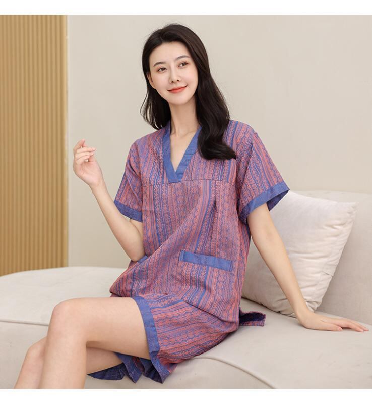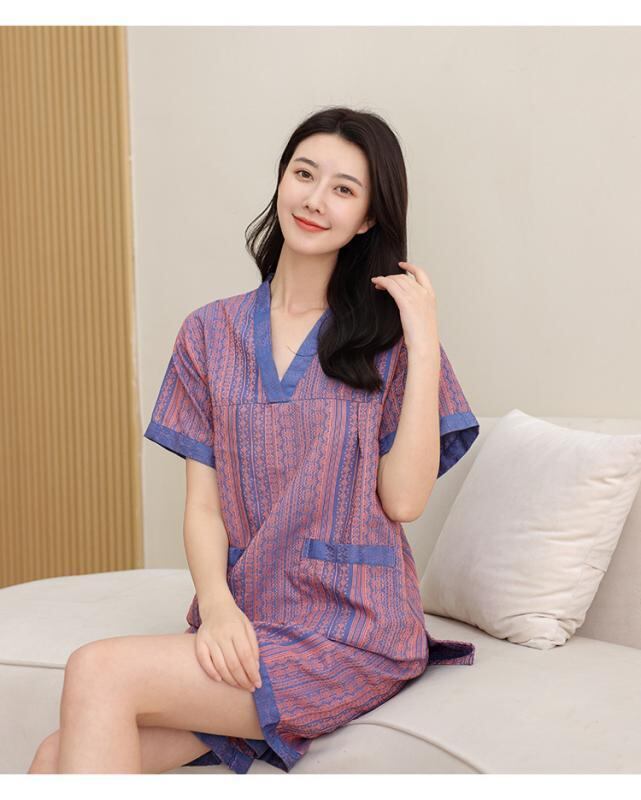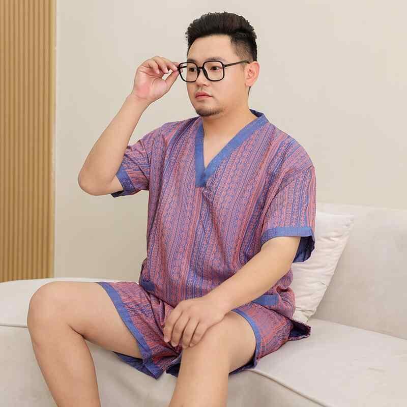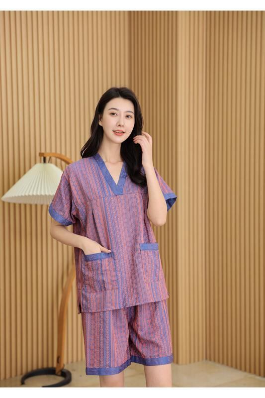 ルームウェア 男女兼用 カップル パジャマ 部屋着 浴衣 上下セット 綿混 再生繊維 サウナ スパ エステ マッサージ リラックス 大きいサイズ ビッグサイズ ゆったり ショートパンツ 七分袖 バイオレット パープル