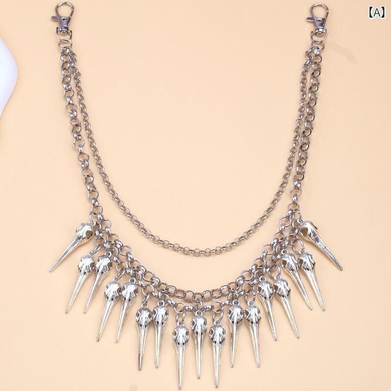 パンツチェーン ユニセックス 金属製 シルバーカラー ハロウィン ダーク 鳥モチーフ タッセル ヒップホップ パンク ロック ストリート系 個性的 存在感 クール ダンス衣装 バイカーファッション アクセサリー