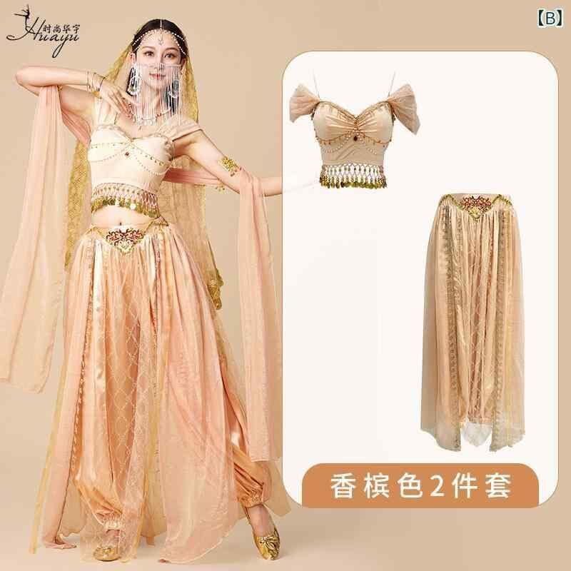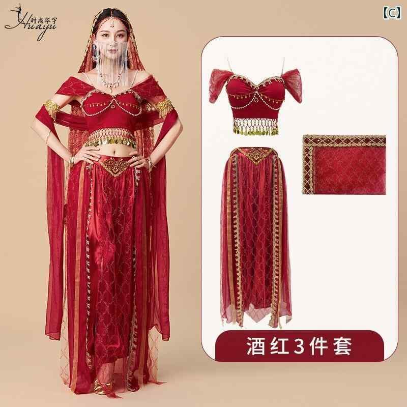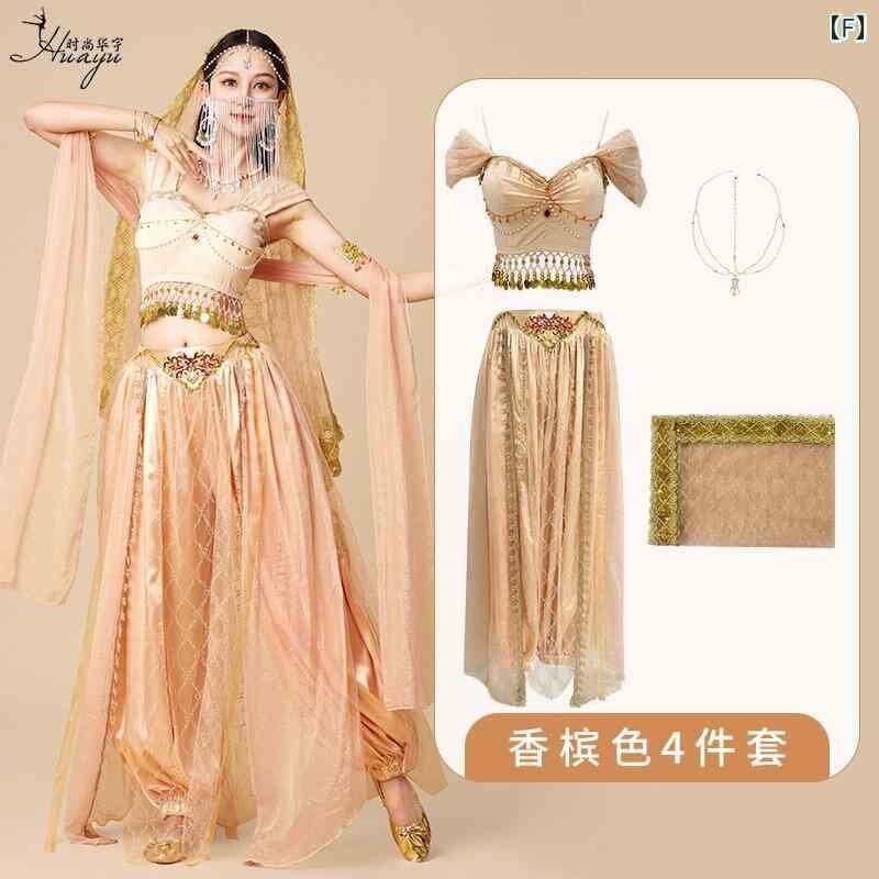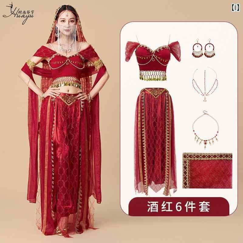 ダンス衣装 レディース 敦煌 飛天 西域風 プリンセス 古代衣装 異国風 インド 砂漠 舞台服 発表会 水晶コットン フェイクシルク チュール ナイロン 春夏 ワインレッド シャンパンカラー