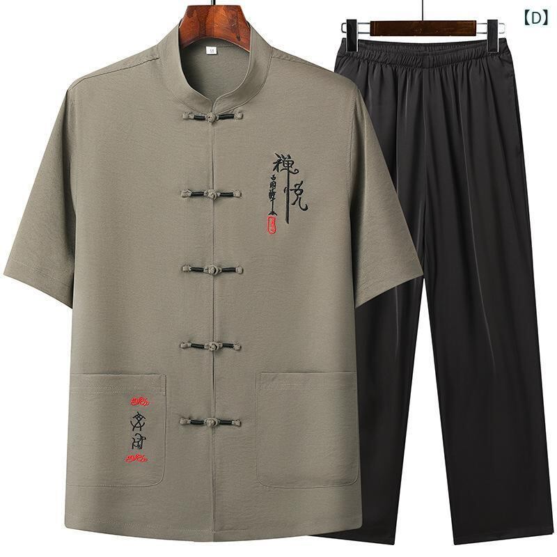 セットアップ メンズ 男性用 シニア 中国風 中華風 太極拳ウェア カンフー服 綿麻 コットンリネン 再生繊維 刺繡 春夏 部屋着 リラックス ホームウェア 上下セット ゆったり 通気性 普段使い