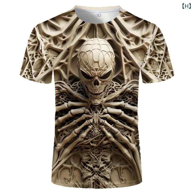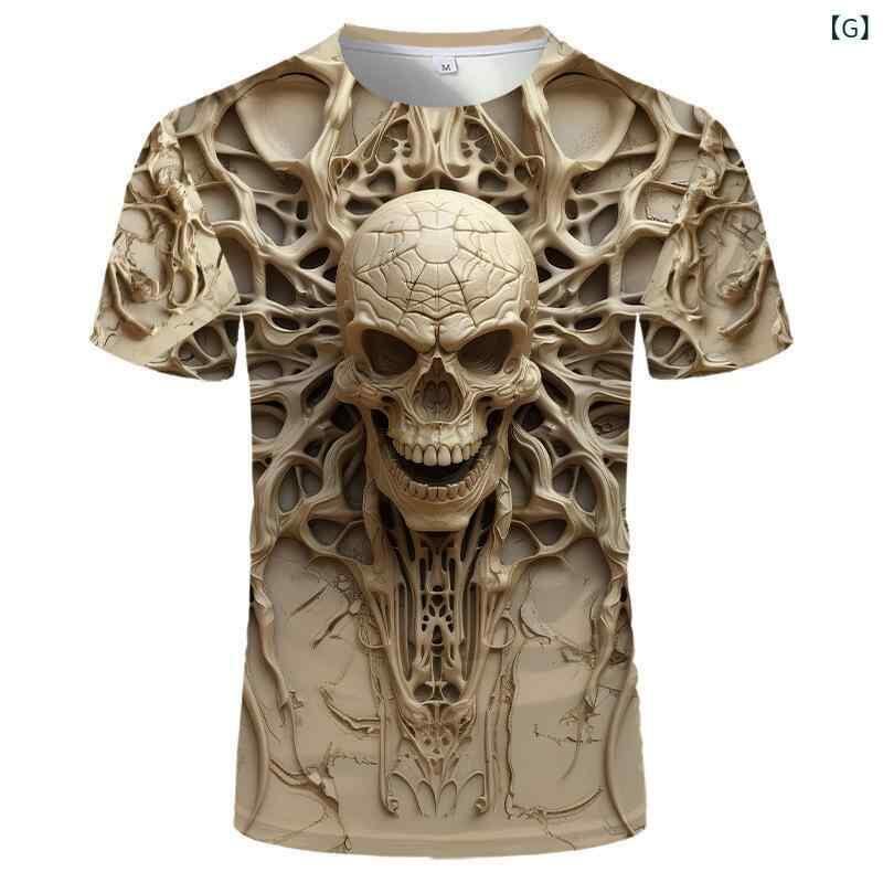 Tシャツ メンズ 夏 サマー リアル スカル ドクロ 3D デジタルプリント 半袖 ストリート系 ストリートファッション カジュアル クルーネック 丸首 薄手 通気性 ポリエステル