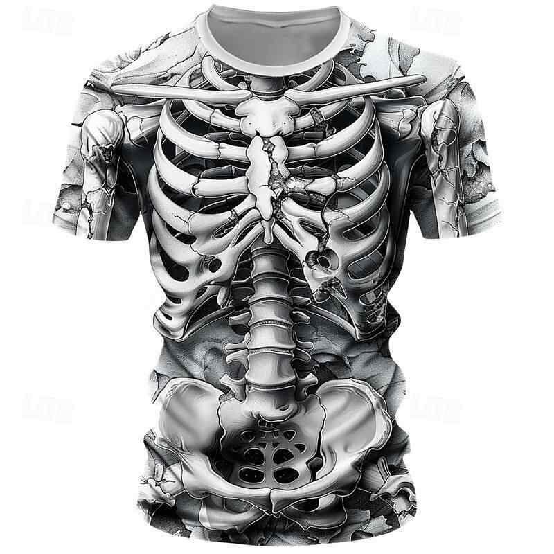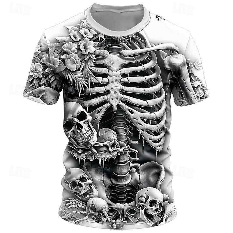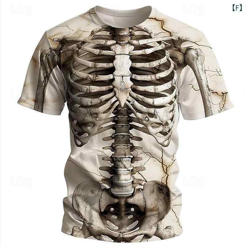 Tシャツ メンズ 男性用 スカル ドクロ 3Dプリント 半袖 ビッグシルエット ゆったり クルーネック 薄手 通気性 吸湿速乾 ポリエステル カジュアル スポーツ アウトドア リゾート 普段使い 春夏
