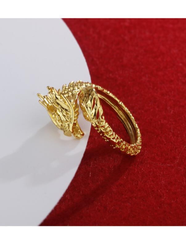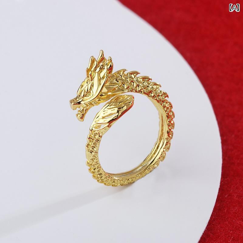 指輪 メンズ ゴールド 龍モチーフ 干支 辰 中国風 人差し指リング サイズ調整可能 伸縮性 銅製 電解メッキ 高級感 ファッション カジュアル 普段使い