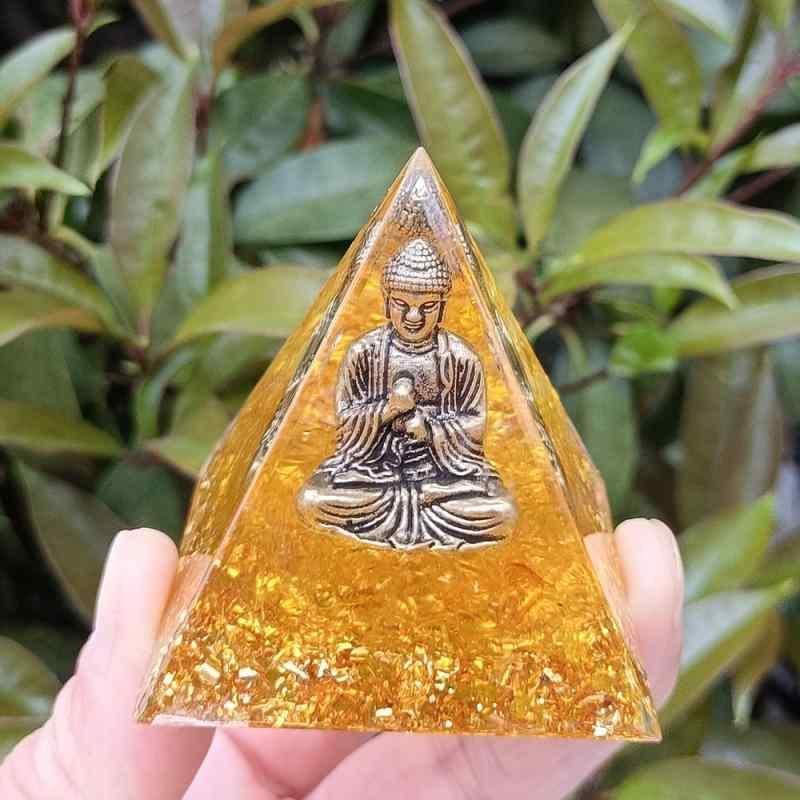 インテリア 置物 水晶 さざれ石 クリスタル 仏像 ピラミッド 樹脂製 レジン細工 黄水晶 オブジェ 飾り オフィス 書斎 デスク リビング 玄関 寝室 癒し 風水 開運
