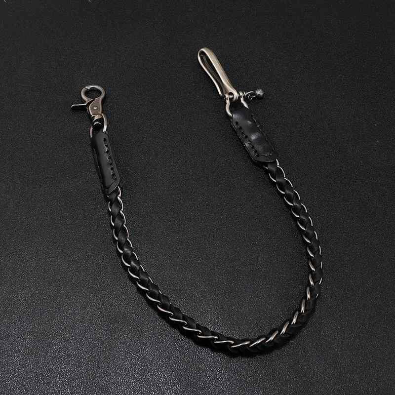 ウエストチェーン 男女兼用 パンク ヒップホップ メタル チェーン パンツチェーン ズボンチェーン 本革 編み込み ブラック クール ストリート系 ファッション小物