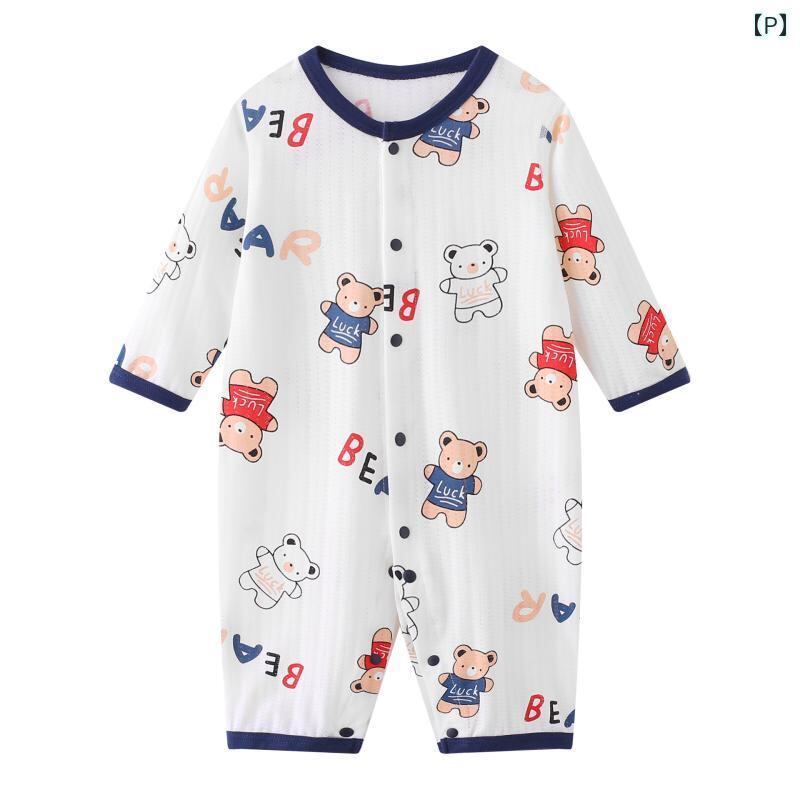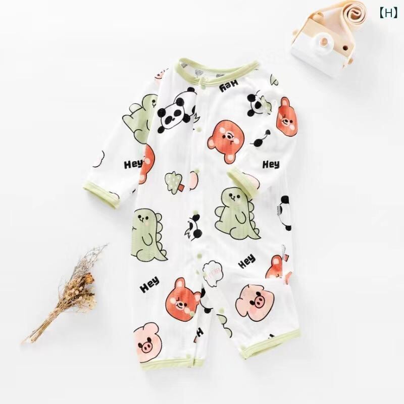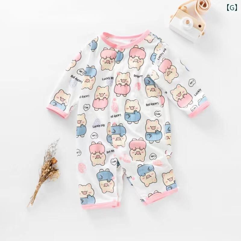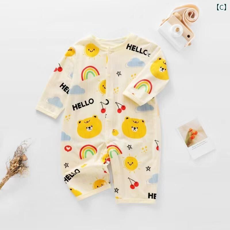 ロンパース ベビー 新生児 男女兼用 長袖 薄手 軽量 モダール素材 肌に優しい 安全基準A 前開き スナップボタン 股下ボタン 総柄 春夏 快適 普段使い 部屋着 パジャマ