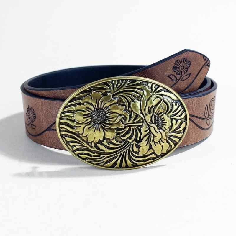 ベルト レディース 女性用 ウェスタン カウボーイ フェイクレザー 彫刻 ローズ柄 エンボス加工 ビッグプレートバックル 調節可能 レトロ ヴィンテージ パンク ロック ボヘミアン エスニック バロック カジュアル ウエストベルト