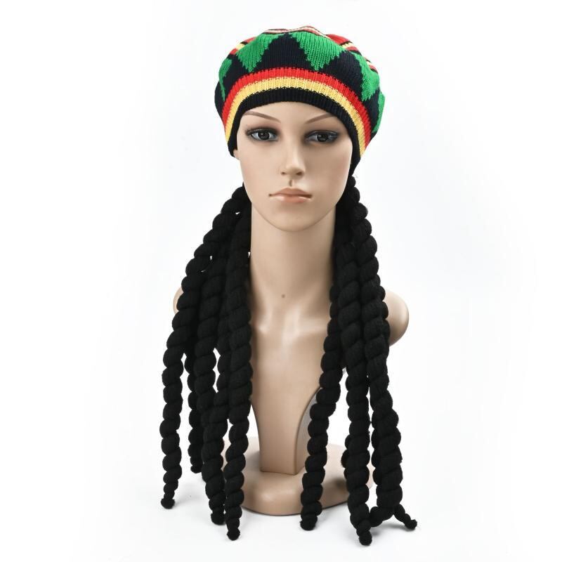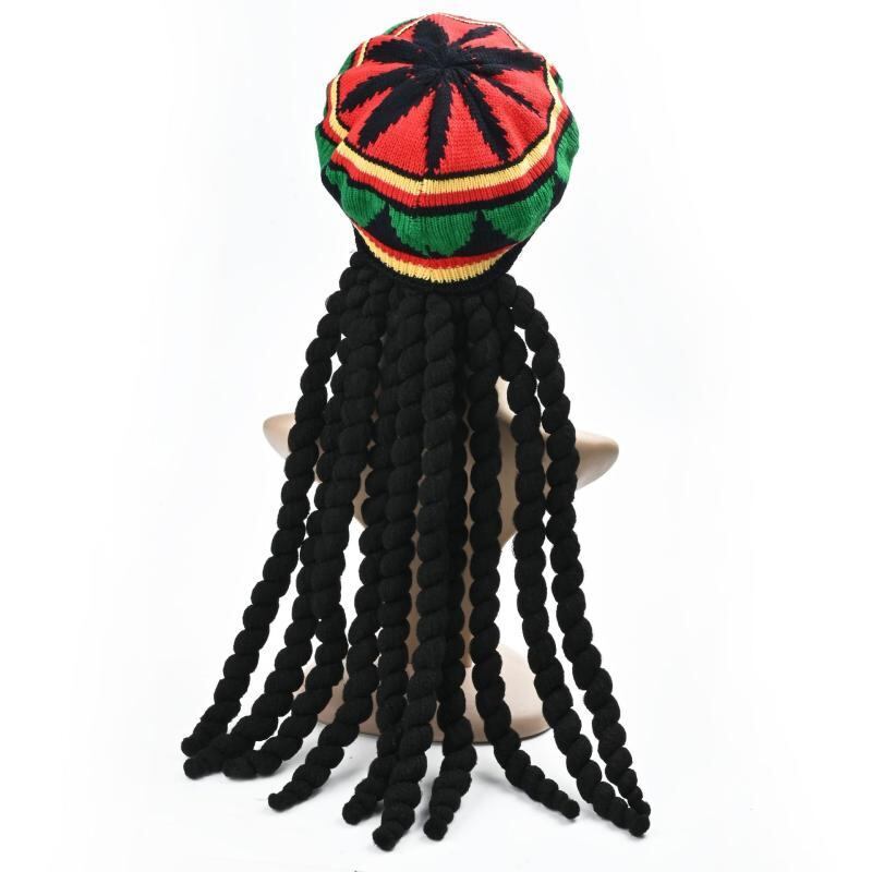 ベレー帽 レゲエ風 ニット帽 コスプレ ウィッグ ドレッドヘア ブレイズ ロングヘア ハロウィン イベント 仮装 ストリート カジュアル 男女兼用 ブラック ブラウン