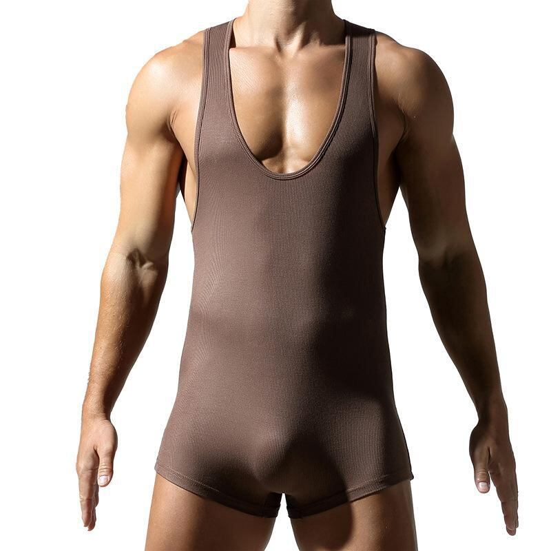 シングレット オールインワン メンズ Yバック タンクトップ型 レーヨン混 フィットネスウェア ルームウェア スポーツ トレーニング 部屋着 軽量 薄手 オールシーズン対応 ラウンドネック