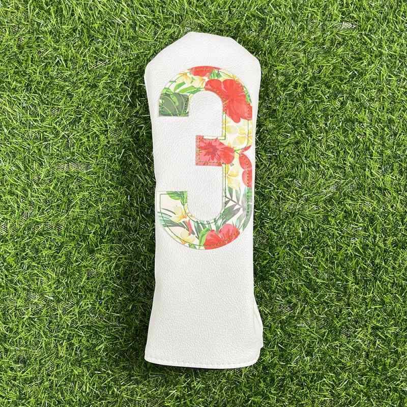 ゴルフクラブ ヘッドカバー ホワイト ナンバー付き ドライバー フェアウェイウッド ユーティリティ UT パター用 ストレート型 保護 傷防止 軽量 耐久性 ゴルフ用品 アクセサリ
