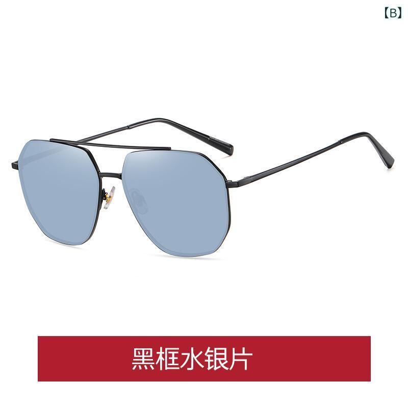 サングラス メンズ UVカット 偏光 ビッグフレーム メタルフレーム スポーツ ドライブ レジャー カジュアル TACレンズ オーバル型 高級感
