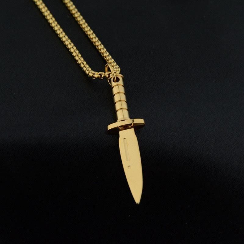 ネックレス メンズ レトロ ヴィンテージ パンク ヒップホップ ストリート おしゃれ ダガー 短剣 ソード 刀剣モチーフ チタン鋼 ペンダント シルバー ブラック ゴールド