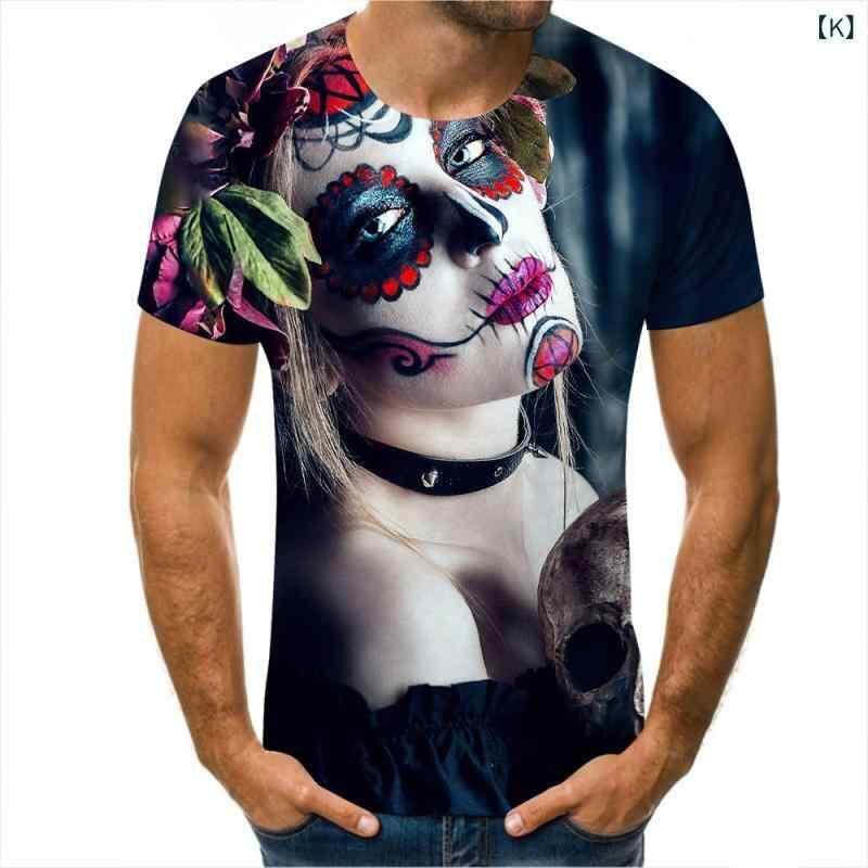Tシャツ メンズ アニメ ホラースカル 3Dデジタルプリント クルーネック 半袖 ポリエステル素材 ゆったり オーバーサイズ 通気性 防シワ カジュアル ストリート系 普段使い 春夏