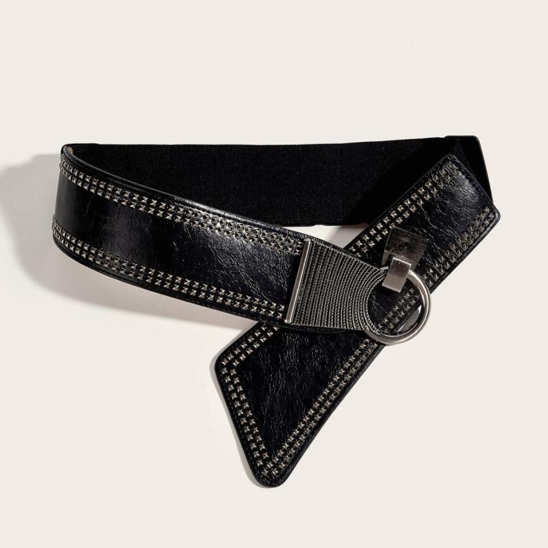 ウエストマークベルト レディース 欧米風 幅広 スタッズ リベットデザイン PUレザー ブラック 伸縮性 ゴムベルト パンクスタイル 個性的 クール ファッション小物