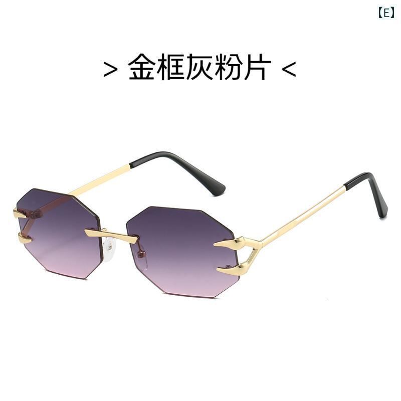 サングラス リムレス 八角形 カットエッジ メタルフレーム UVカット 紫外線対策 ビッグフレーム 個性的 ファッション小物 旅行 アウトドア スポーツ 普段使い ドライブ